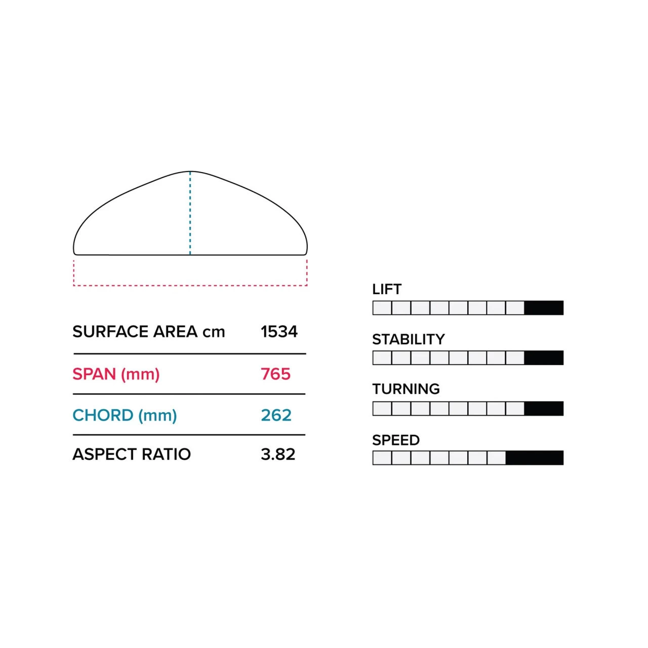 - Self-regulating lift at higher speeds to prevent over-foiling.